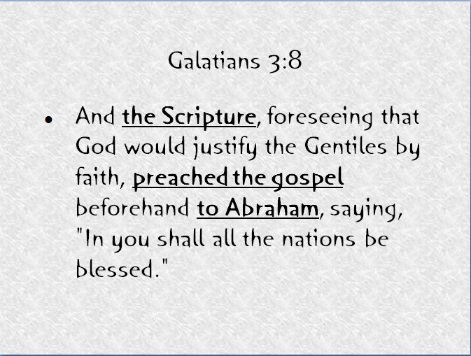 In today’s passage we discover that the gospel of which Paul is speaking to the Gentile Galatians was revealed in the Old Testament to Abraham.