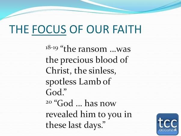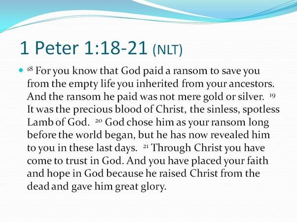 So, Peter tells his readers that those former sacrifices were prophecies, and that we have now been shown their fulfilment. Biblical faith can save because God has paid the ransom, “the precious blood of Christ.”