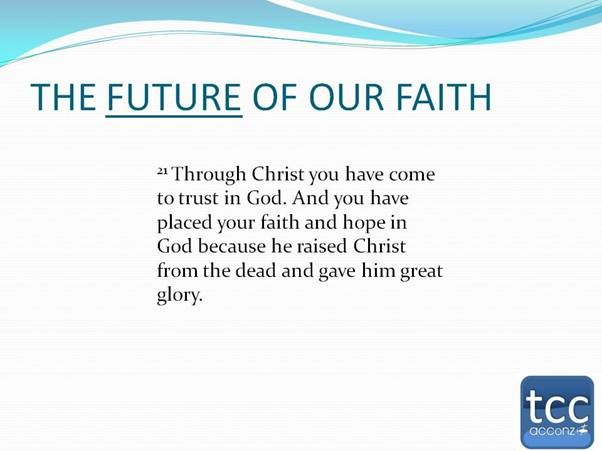 The hope that Peter steered his readers to was not a hope of something happening at death. It was a hope of a resurrection. Just as God raised Jesus Christ from the dead, so he will raise us when Jesus returns. Peter told his readers that they can stand firm in their faith because the same God who raised Christ and glorified him also intends to do the same for us. So, even if we do suffer during this life, our destiny is sure. The fact that Jesus suffered and then was raised and glorified is all the proof we need. And, the little faith that we have is all the faith that we need, because it is faith in the God who raises the dead.