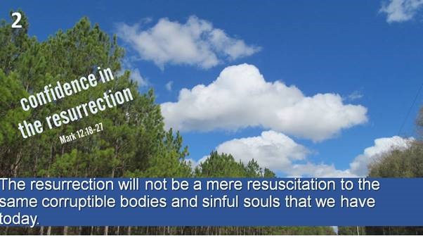 The second point in Jesus’ argument is that the resurrection will not be a mere resuscitation to the same corruptible bodies and sinful souls that we have today. God will restore us not to our present status, but to the one he intends us to have for eternity. He addresses that argument that the Sadducees made, presuming that resurrection is merely bringing a body back to life.