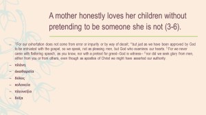 4 but just as we have been approved by God to be entrusted with the gospel, so we speak, not as pleasing men, but God who examines our hearts. 5 For we never came with flattering speech, as you know, nor with a pretext for greed–God is witness– 6 nor did we seek glory from men, either from you or from others, even though as apostles of Christ we might have asserted our authority. 7 But we proved to be gentle among you, as a nursing mother tenderly cares for her own children. 8 Having so fond an affection for you, we were well-pleased to impart to you not only the gospel of God but also our own lives, because you had become very dear to us. 9 For you recall, brethren, our labor and hardship, how working night and day so as not to be a burden to any of you, we proclaimed to you the gospel of God.