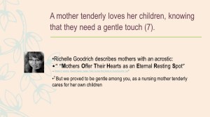A mother tenderly loves her children, knowing that they need a gentle touch (7).