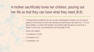 - Paul said, “we were well-pleased to impart to you not only the gospel of God but also our own lives” (8).
