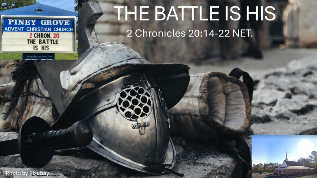 Notice also the People’s work in today’s story. While the king was praying, the whole nation had gathered and was fasting—all the men, with their wives and children, even the infants. The Holy Spirit spoke to one of those men. He was a Levite of the clan of Asaph. His name was Jachaziel. The Lord spoke through him and told the soldiers to march down to meet the enemy the next day. He told them exactly where they would meet the enemy. He also told them not to be afraid. He said they would meet the enemy, but they would not have to defeat them. He said the battle was not theirs, it was the LORD’s. He said they will not fight in this battle. He said, “Take your positions, stand, and watch the LORD deliver you, O Judah and Jerusalem. Don’t be afraid and don’t panic! Tomorrow, march out toward them; the LORD is with you!'”